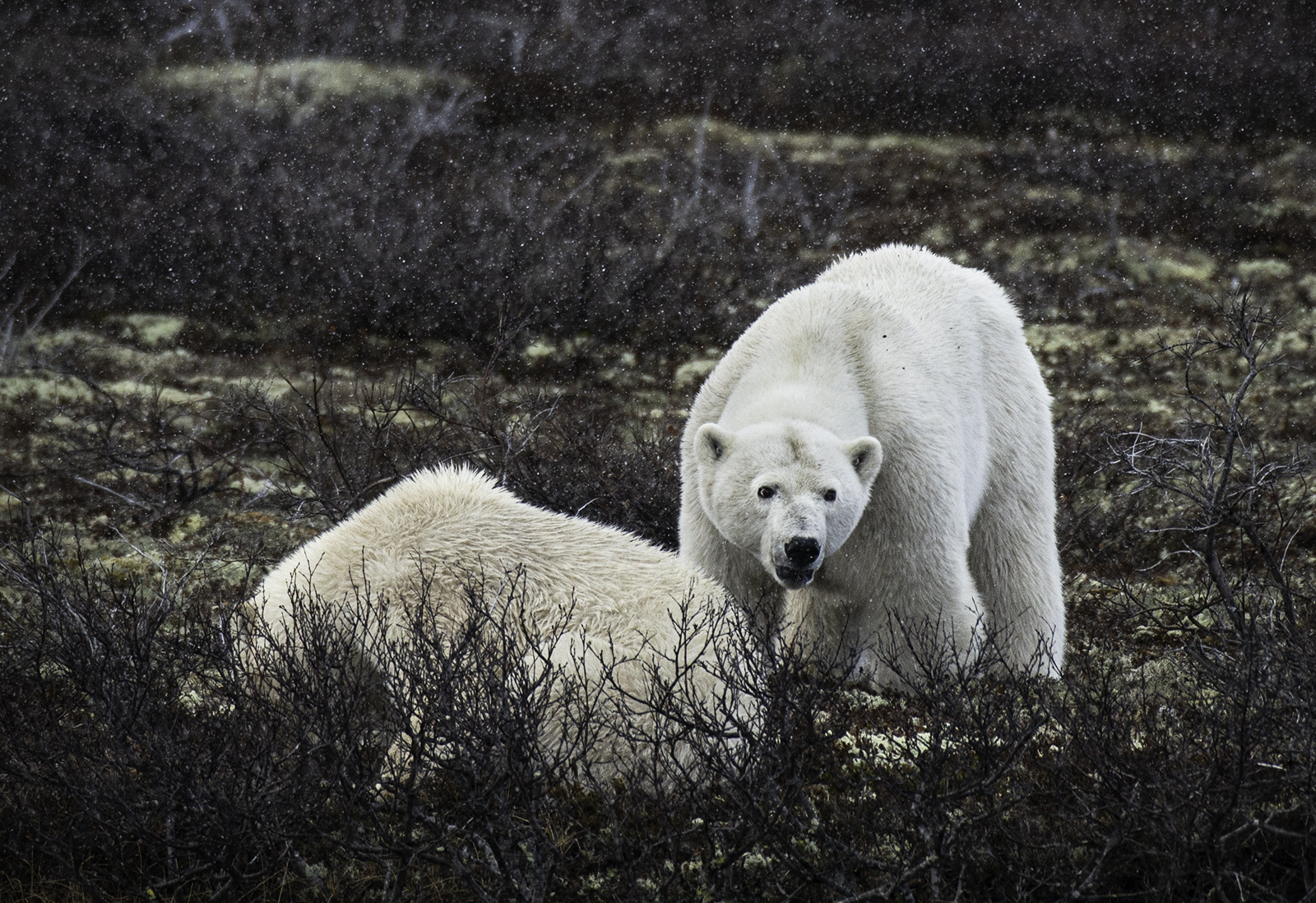 We were fortunate to have good weather…. of course, weather in Churchill changes on the half hour. We had snow, rain, and bright sunshine. The animals coped with the weather just fine.