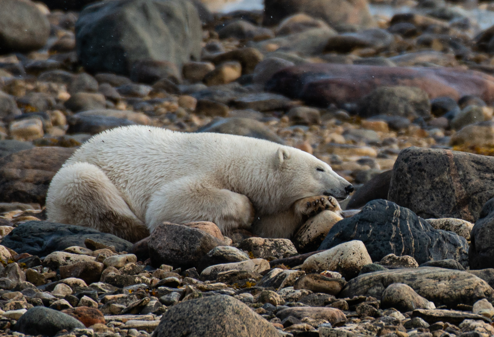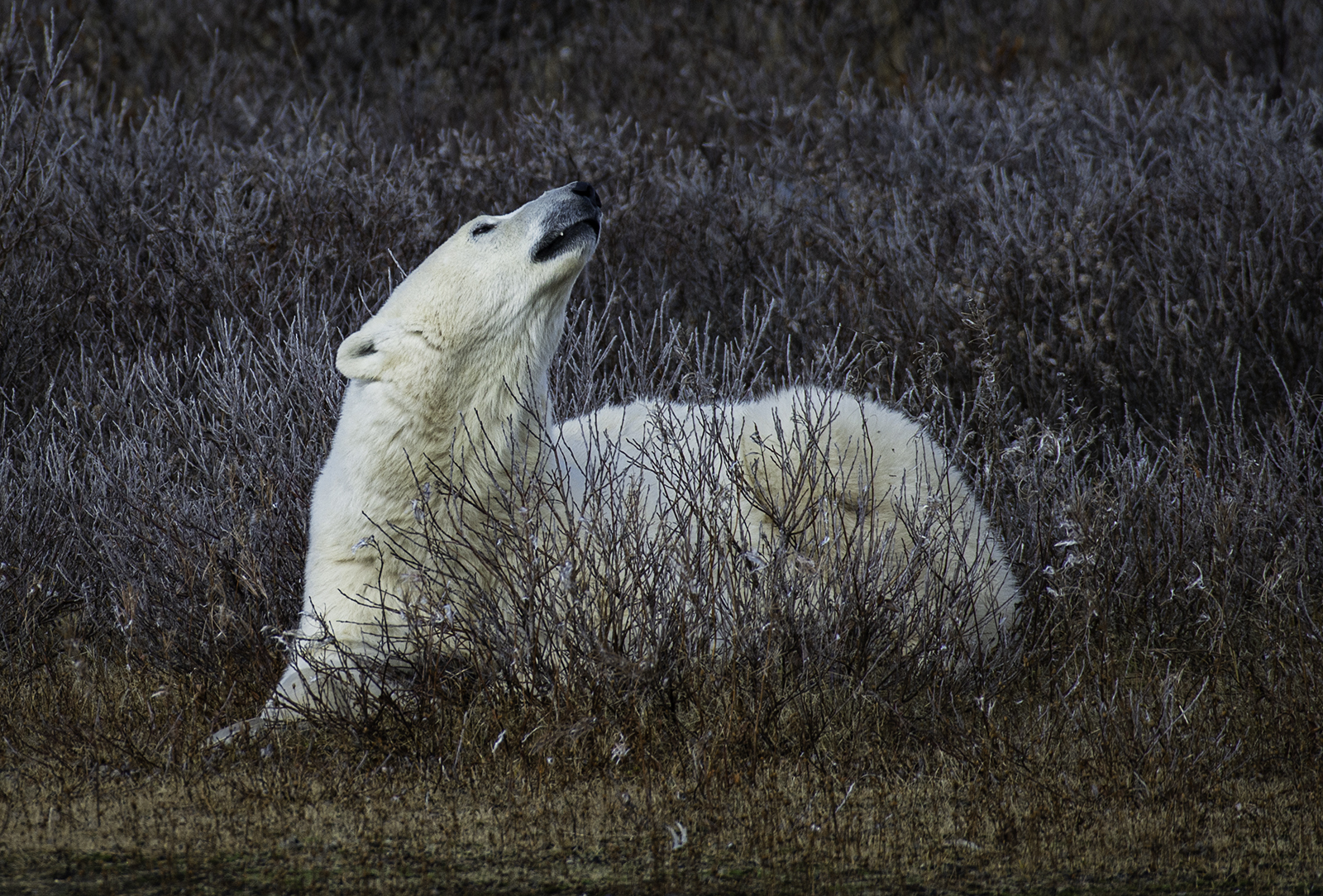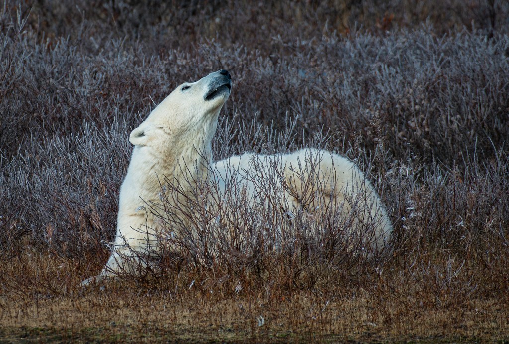 In northern Manitoba, Polar Bear season begins around mid October. Bears who had been living in the bush all summer congregate on the shore of Hudson Bay, waiting for the open water to freeze over.