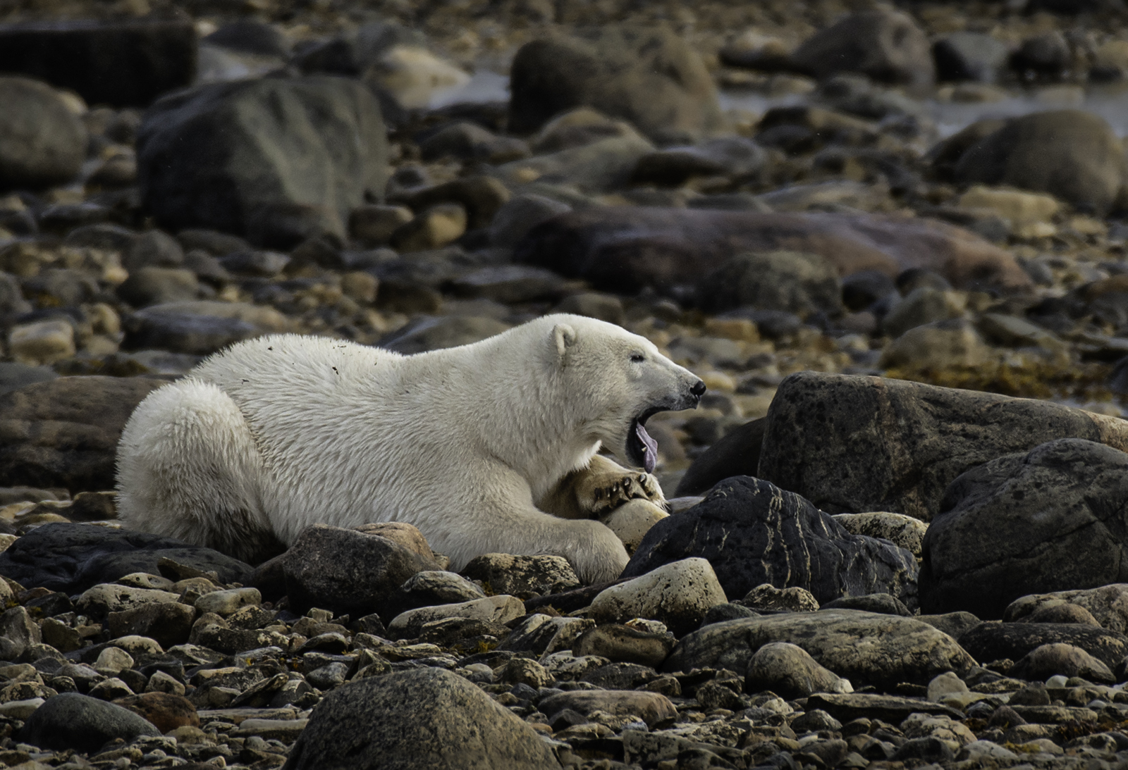 Once the ice forms, the bears immediately head out on the ice for the winter. But for those few weeks, they are found in abundance along the shoreline.