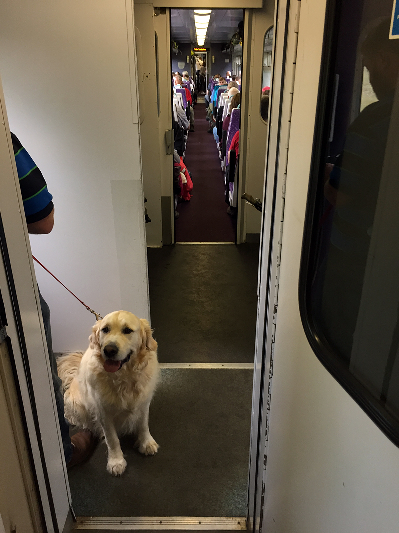The Scottish trains were always full, and the passengers were friendly. We had many interesting conversations. Throughout Britain, people take their dogs along wherever they go. We made both human and dog friends on every train.