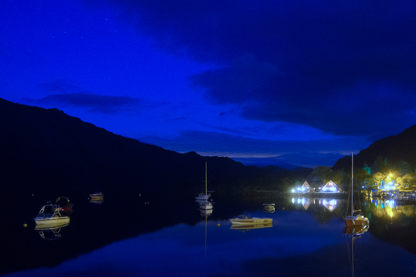By mid afternoon, we had reached Ardlui, at the north end of Loch Lomond. It was a wonderful, peaceful spot. Our room looked right down the Loch. We ate in the hotel dining room and headed back out to the lake to enjoy the moonlight.