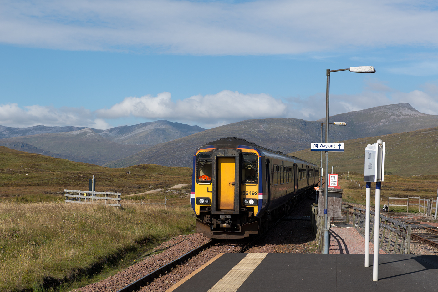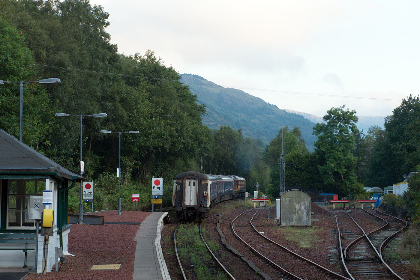 Early the next morning, I rose early and headed to the train station – a simple whistle stop platform – to watch the Caledonian Sleeper train pass. This train leaves London every evening for the Highlands. The train splits in Glasgow, with one section heading to Inverness and the second heading to Fort William. It’s a popular way to reach the Highlands, and saves one a daylong ride. All for the price of a night in a hotel.