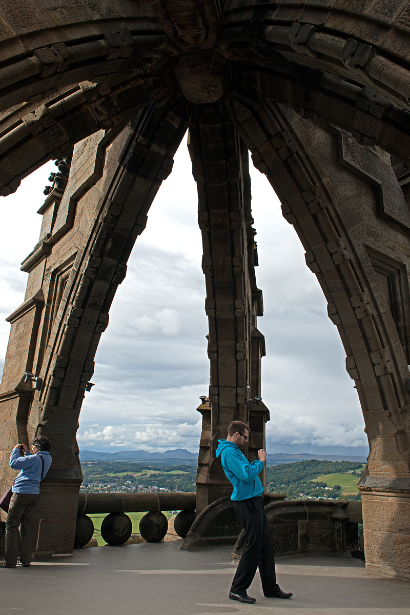 Stirling sits to the south of, and on the edge of, the Highlands. You can see the mountains from just about anywhere in town. There are two excellent vantage points – Stirling Castle, which sits atop the highest hill in Stirling, and the Wallace Monument, commemorating the original Braveheart – across the valley from town. Both required very spirited uphill climbs – the Wallace Monument in particular is a tough one. the views were worth the sweat.