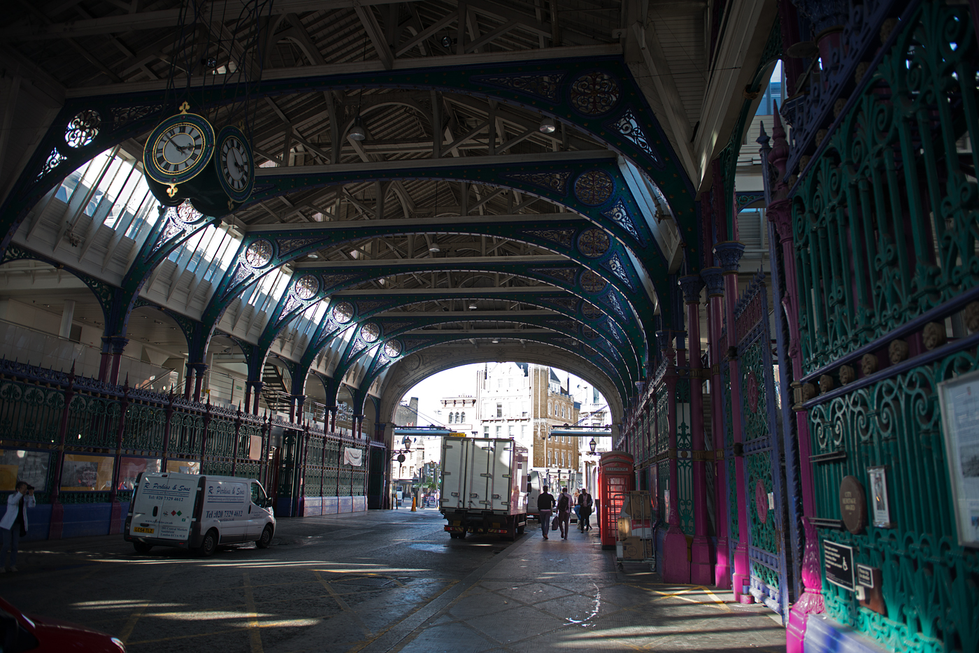 After lunch at Fuller’s Brewery, we stumbled by pure chance on one of the most interesting places we found in London – the Smithfield Meat Market. It’s the main meat terminal in London. Hidden behind the ornate Victorian gratings is a very modern and up to date refrigerated meat warehouse.
