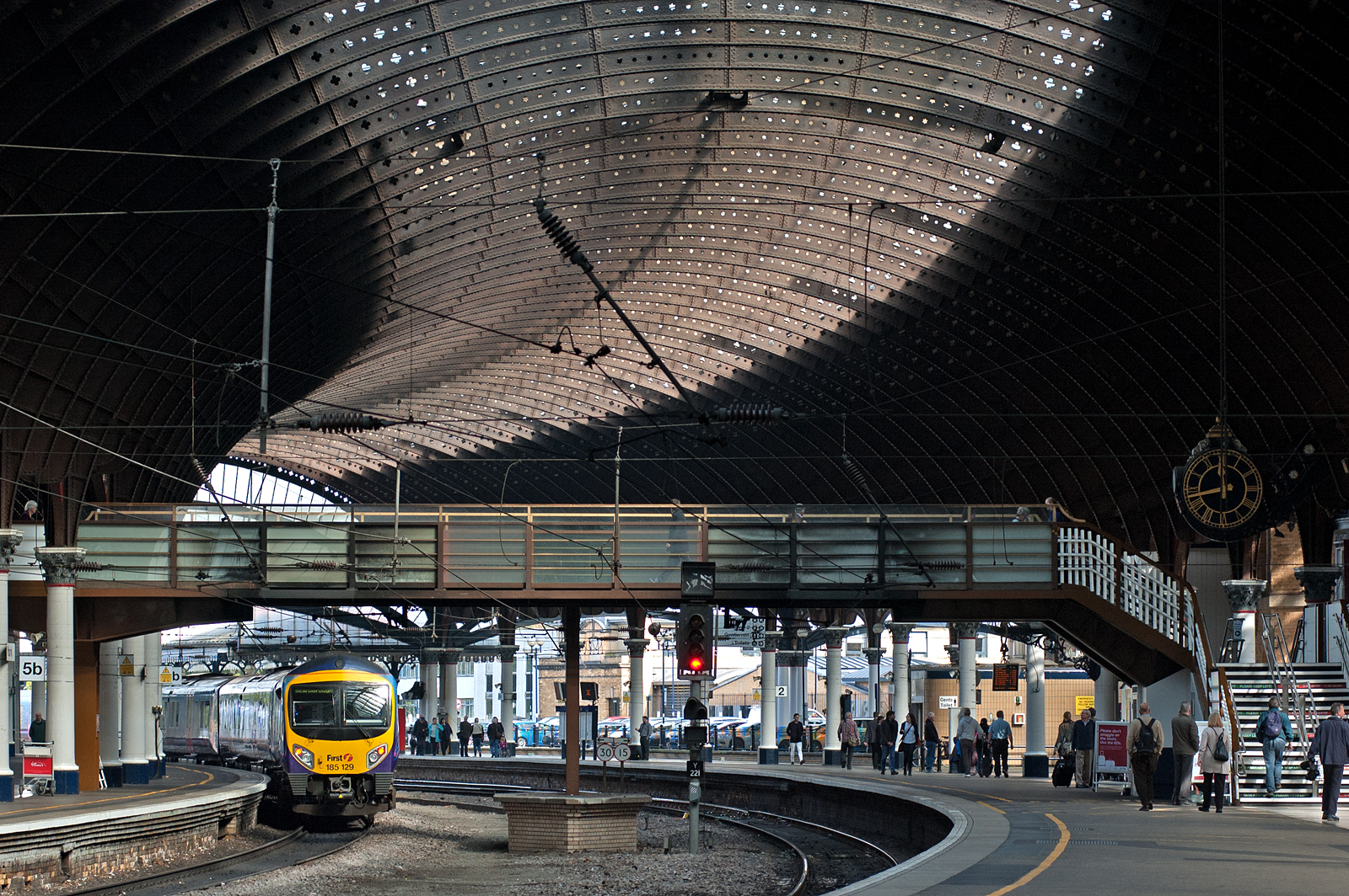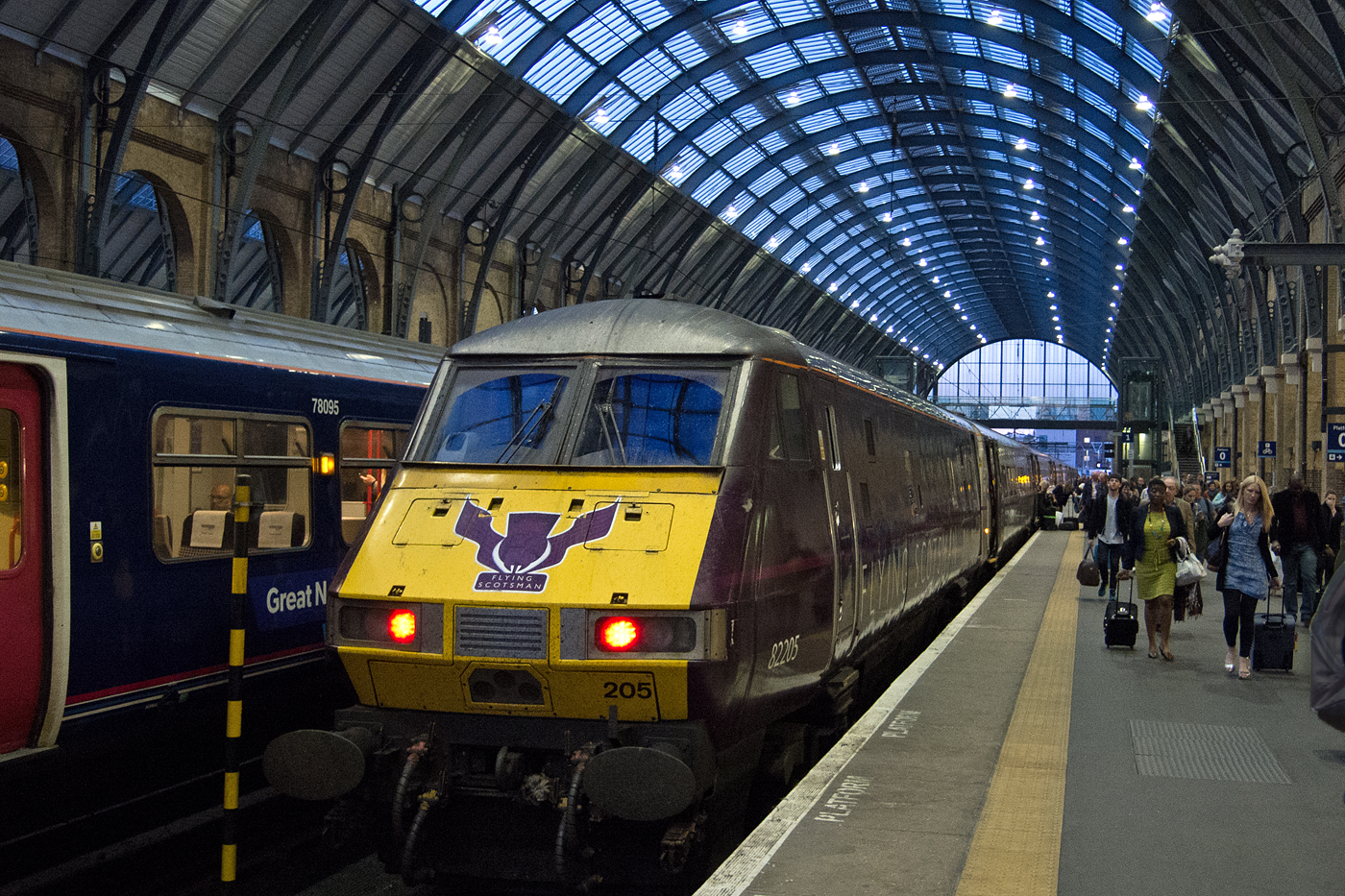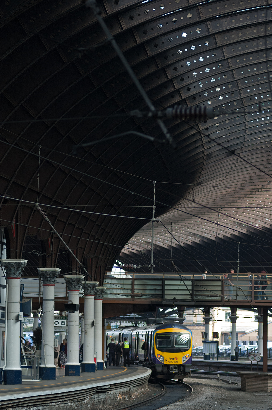 After taking our fill at Doncaster, we hopped yet another Virgin HST to York. The photography was even better here, thanks to the amazing train shed and an equal frequency of activity. We made friends with the station’s Constable, who graciously pointed us to a pub that offered an especially inexpensive and tasty lunch. Trust a copper to know the cheapest place to eat!