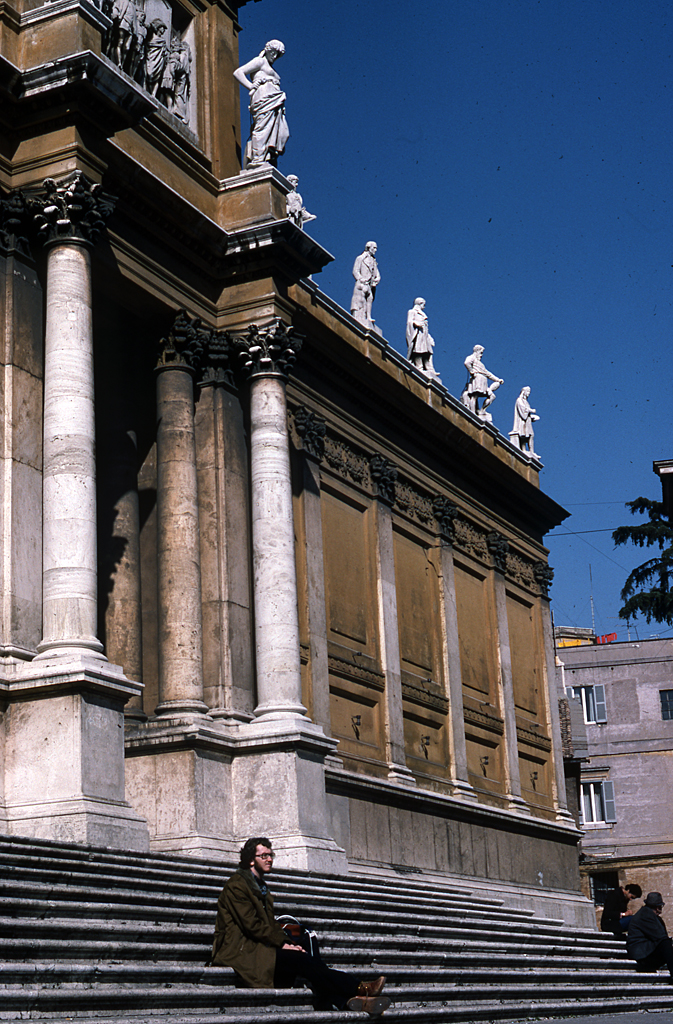 When I was in Rome in 1976, I asked a fellow traveller to take a picture of me. We happened to be passing an old, Romanesque building. I had no idea what it was, but the statues and the steps made it a great photo op.