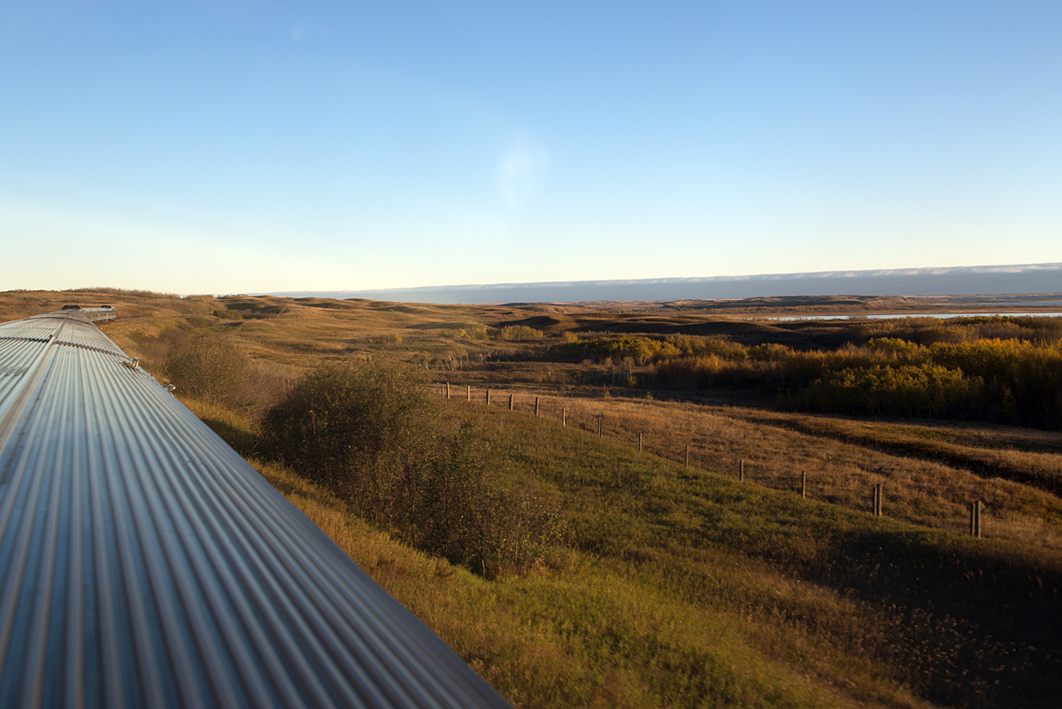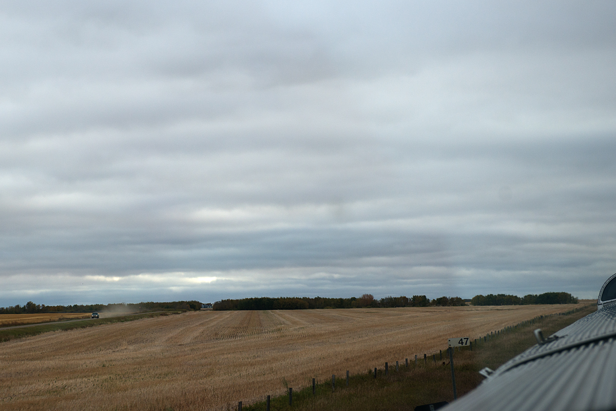 The northwestern prairie is anything but flat. As we sped eastwards, we spotted a moose near the Alberta-Saskatchewan border. A solid cloud front was waiting for us at Unity. The rest of the day was spent watching combines and grain elevators fly by.