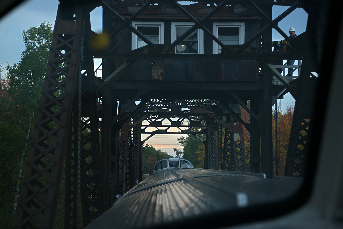 The moody weather made for wonderful sightseeing from our cozy lookout. Looking forward as oncoming trains and cars appeared, one had the feeling of an Alex Colville painting come to life….would a galloping horse appear in the gauge?