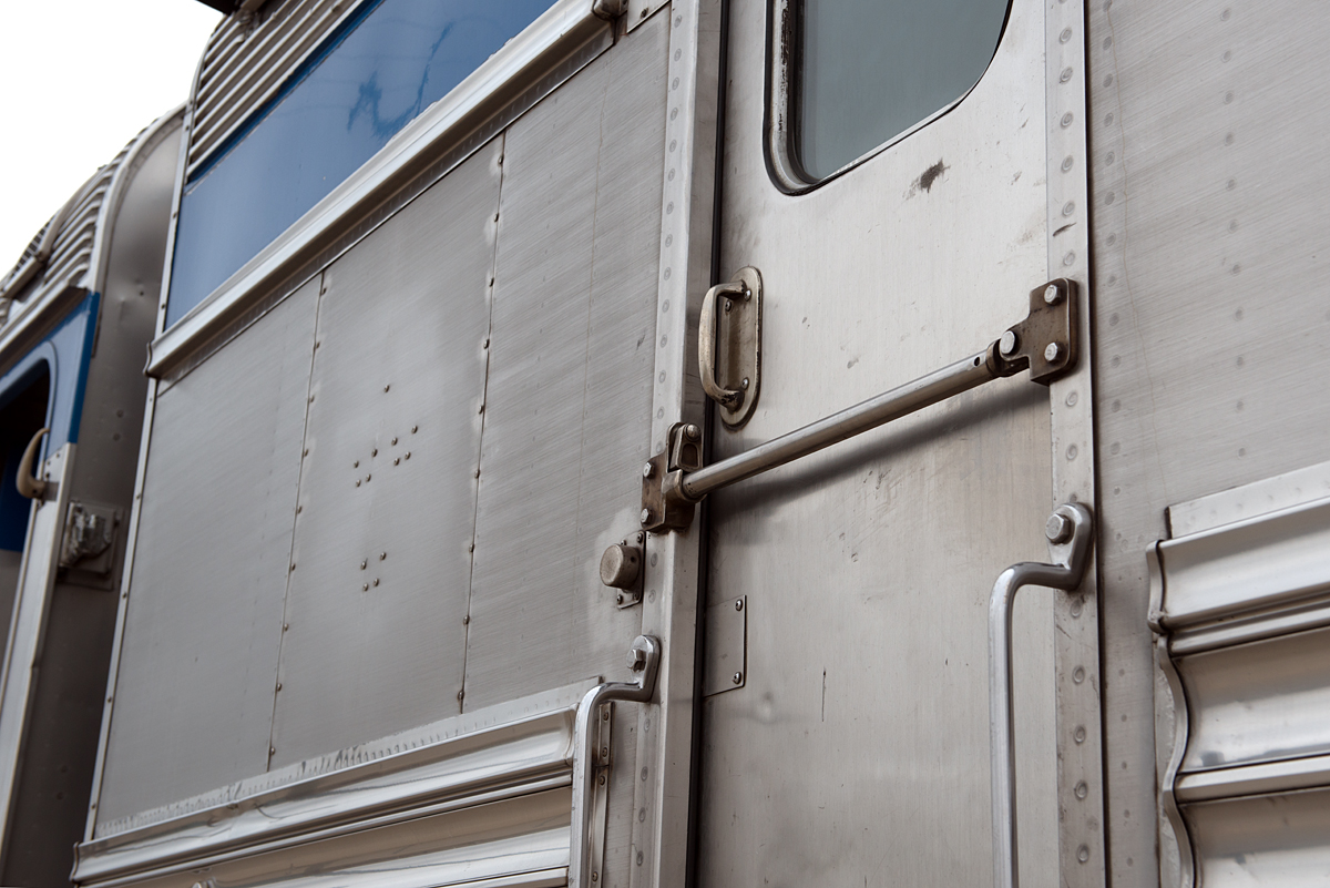 Forty-five years after their removal, the traces of the old Canadian Pacific beaver crests that adorned each car are still apparent. The outlines and bolt holes simply refuse to give up their heritage.