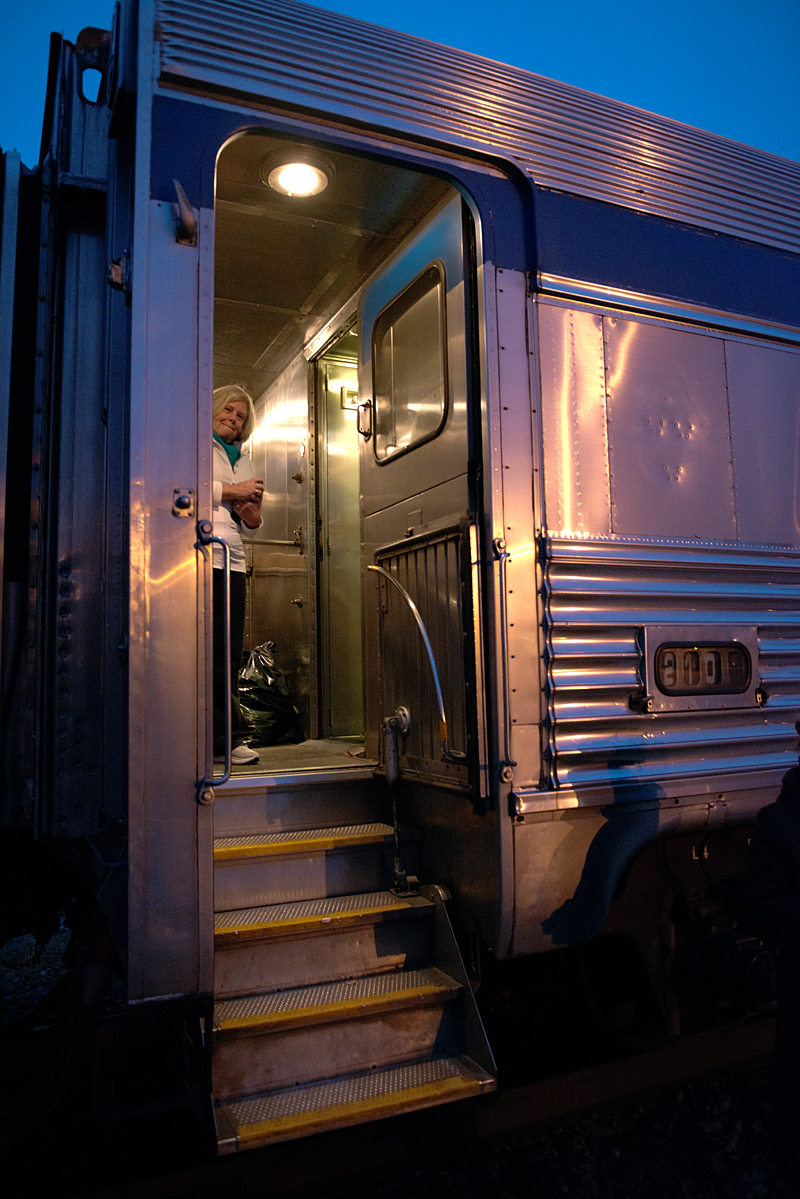I can’t imagine how one would tire of this experience. There are the ritual events: the meets with freight trains, the longer station stops that demand walking the full length of the train, the passing of the opposing passenger train. There are the mesmerising visual details of the train cars. There is the smell of the trains. There is the challenge of walking from one car to the next, through the pitching vestibules with their somewhat grimy and intimidating footplates. There are the people, coming and going, leaving one place and heading for another, always getting to know each other and then wishing each other a safe arrival.